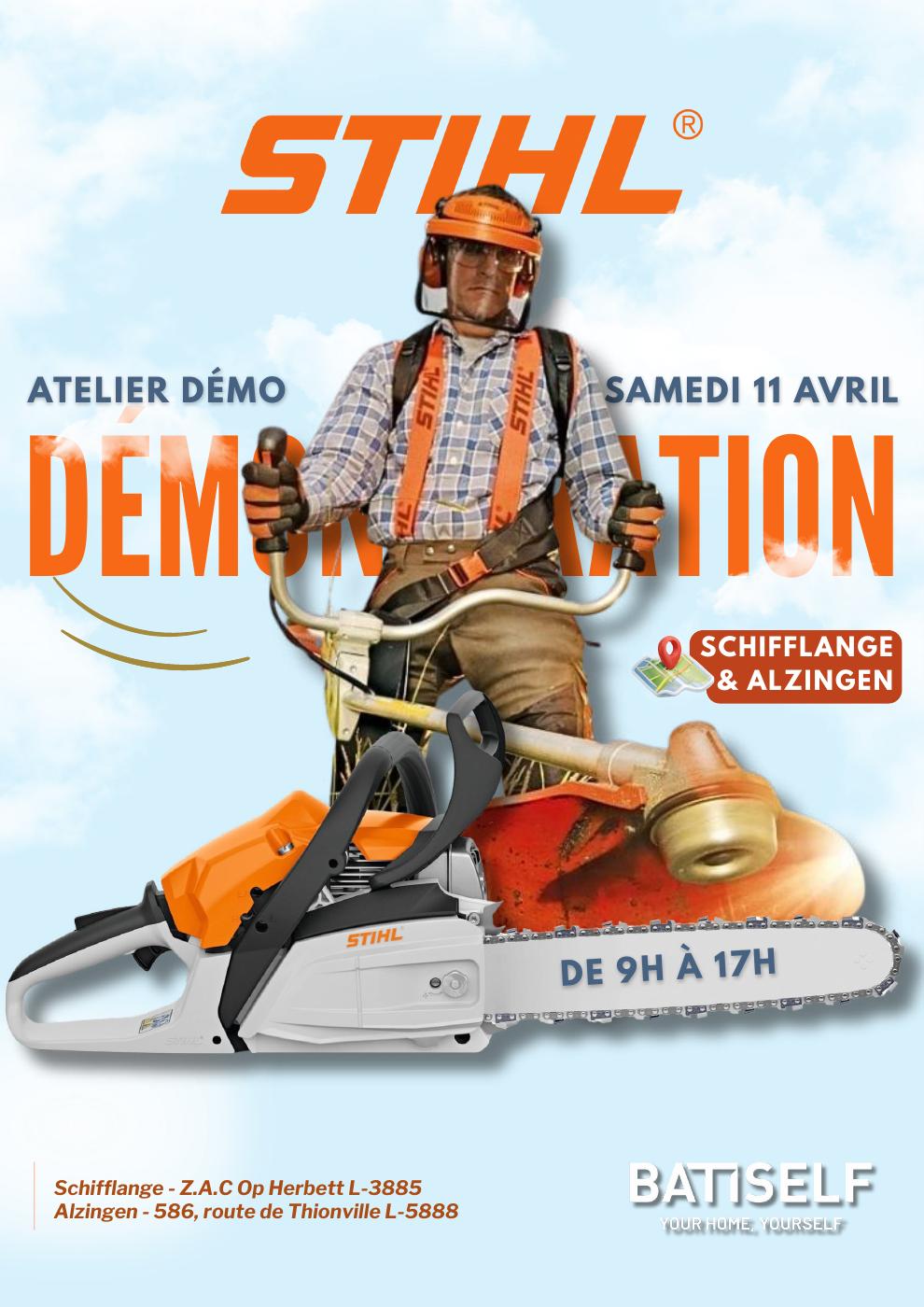 Rendez-vous le samedi 11 avril de 9h à 17h dans vos magasins Batiself Alzingen et Batiself Schifflange 👉 Venez découvrir et tester les équipements STIHL en conditions réelles 👉 Profitez des consei...